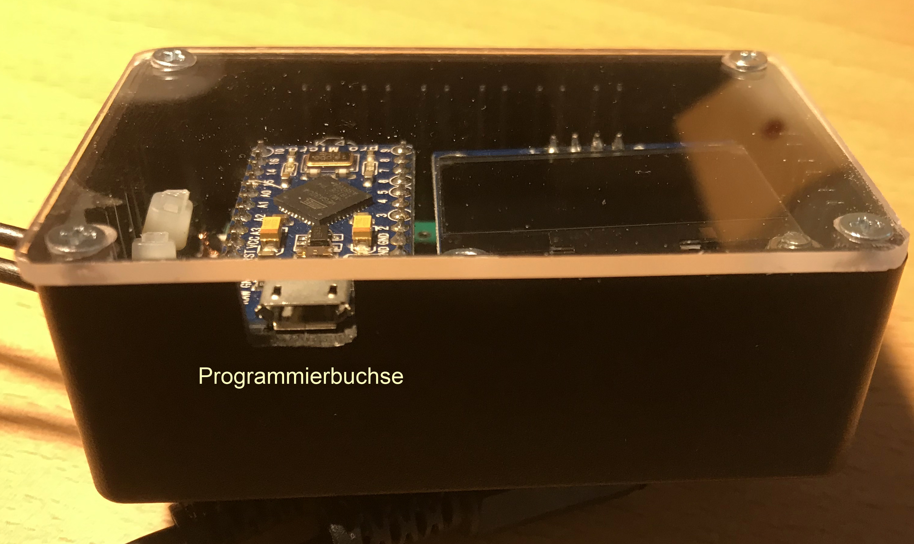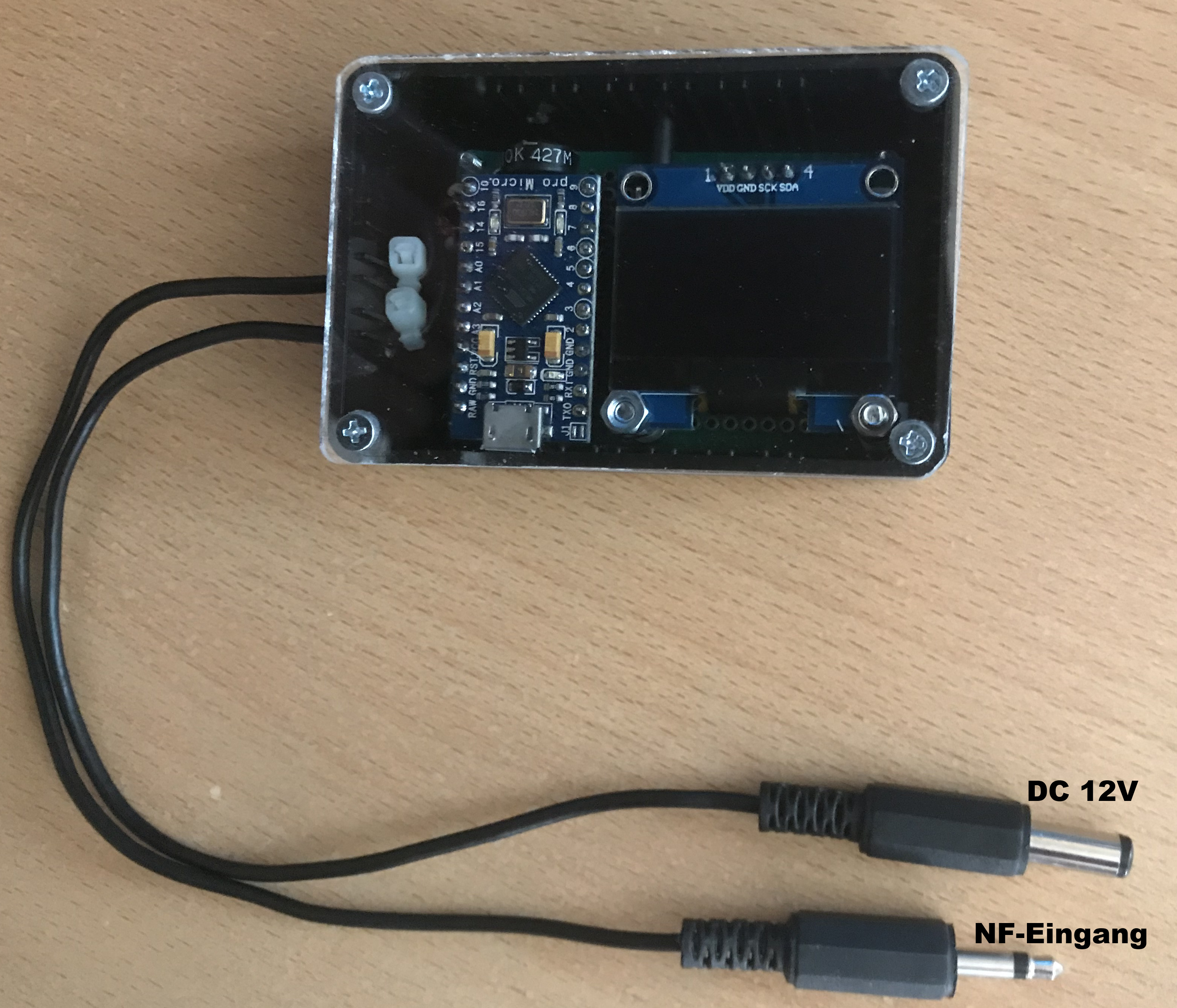 Die Herausforderung lag darin, die Software von Hjalmar für ein OLED mit I2C-Ansteuerung umzustricken. Das Ergebnis kann sich sehen lassen.