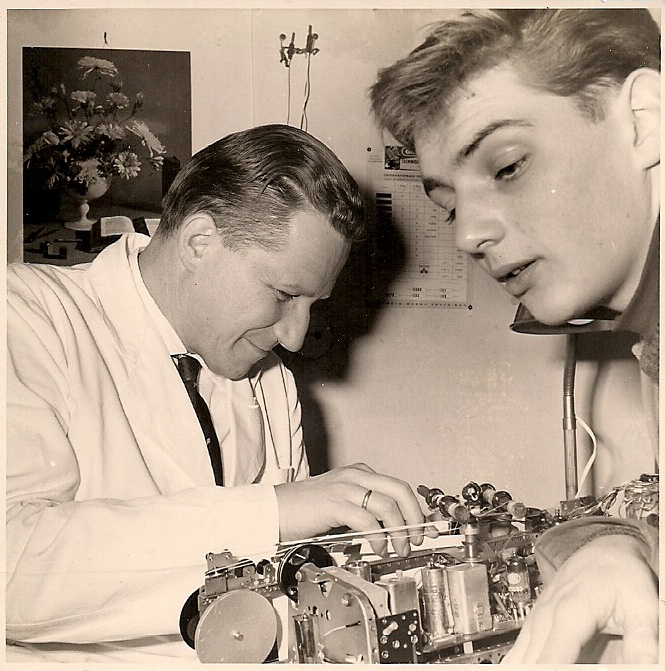 1956, schon im Alter von 9 Jahren, gehörten Radios mit ihrem Innenleben zu meinen Favoriten. Meine erste Erfahrung mit einem geladenen Elko werde ich nie vergessen. Einfachste Mittel, Kupferdraht - Papprolle - Kristall - Grammofonnadel und ein uralter 2000 Ohm Kopfhörer, reichten für einen ersten Detektor aus. Das wenige Taschengeld reichte für eine bessere Diode oder später eine EC92 für's Zigarrenkisten-Audion und noch später einen OC71 zur NF-Verstärkung. Alte Chassis dienten als Spender für Draht, Kondensatoren oder Widerstände.