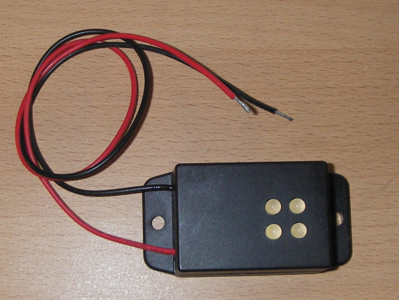 Der Flasher wird über eine 100 mA Kabelsicherung direkt an die Autobatterie angeschlossen. Er erzeugt im ca. 4 Sekundentakt einen sehr hellen Lichtblitz bei ganz geringer Stromaufnahme.